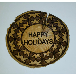 This is a seasonal themed laser engraved cedar biscuit. Great home decor item for modern rustic vibes.