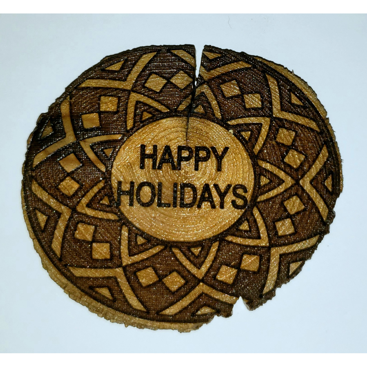 This is a seasonal themed laser engraved cedar biscuit. Great home decor item for modern rustic vibes. Just in time for the season. Great gift ideas for rustic decor lovers.