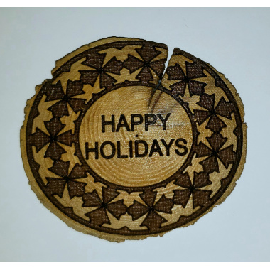 This is a seasonal themed laser engraved cedar biscuit. Great home decor item for modern rustic vibes.